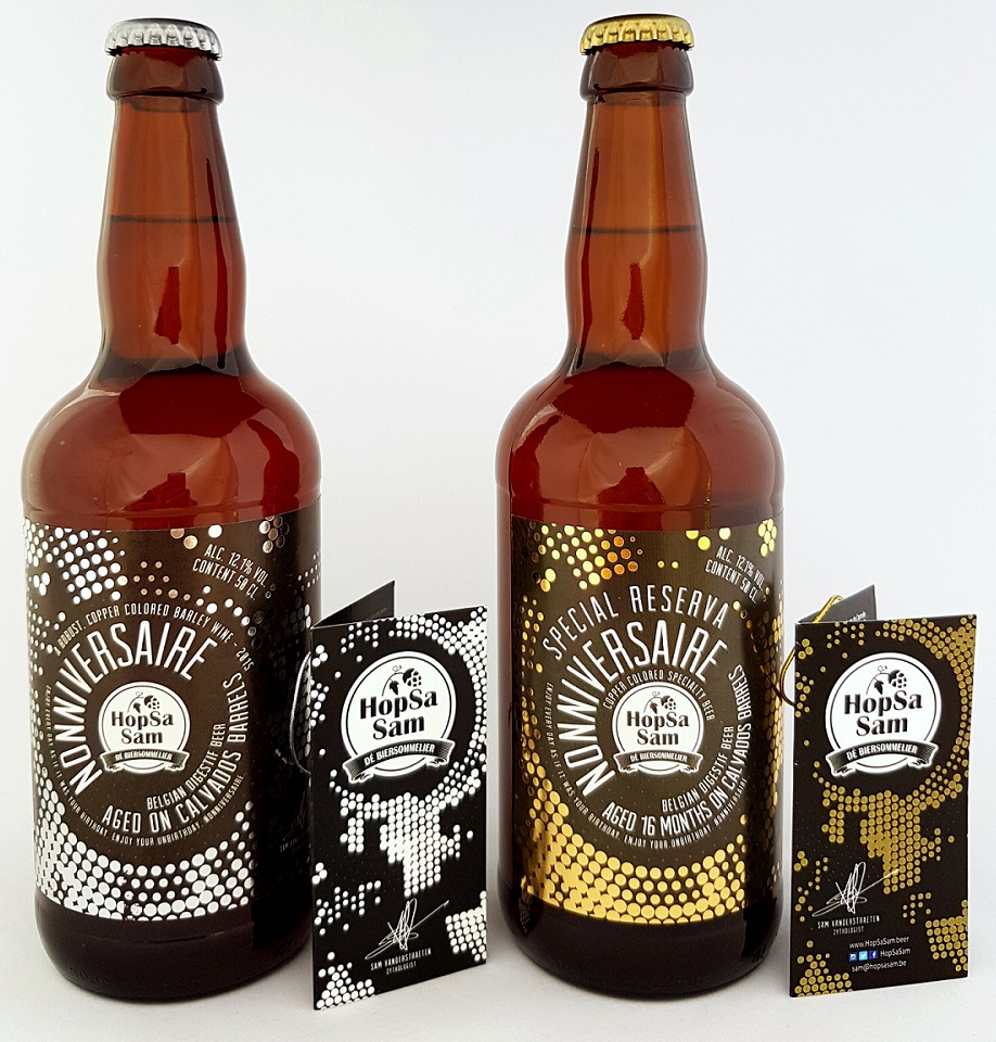 Er zit flinke groei in de markt van bijzondere biertjes. En daarbij heb je etiketten nodig. Het liefst onderscheidende etiketten. En, zo blijkt tijdens het gesprek in Cuijk met Melchior en zijn vader, directeur/eigenaar René Bos, het is nog helemaal niet zo simpel om even een etiketje te bestellen. Ja, je kunt wel zomaar iets bestellen, maar de kans dat het in het proces (of erna) fout gaat, is groot. ‘Wij organiseren voor die startende brouwer vaak een rondetafelgesprek met relaties uit diverse hoeken,’ zegt René. ‘In één ochtend of middag zet je samen de wensen en mogelijkheden op een rij; de flessoort, het etiketmateriaal, de wijze van etiketteren en niet te onderschatten zaken als de lijmsoort. Een investering die zich altijd terugbetaalt.’
