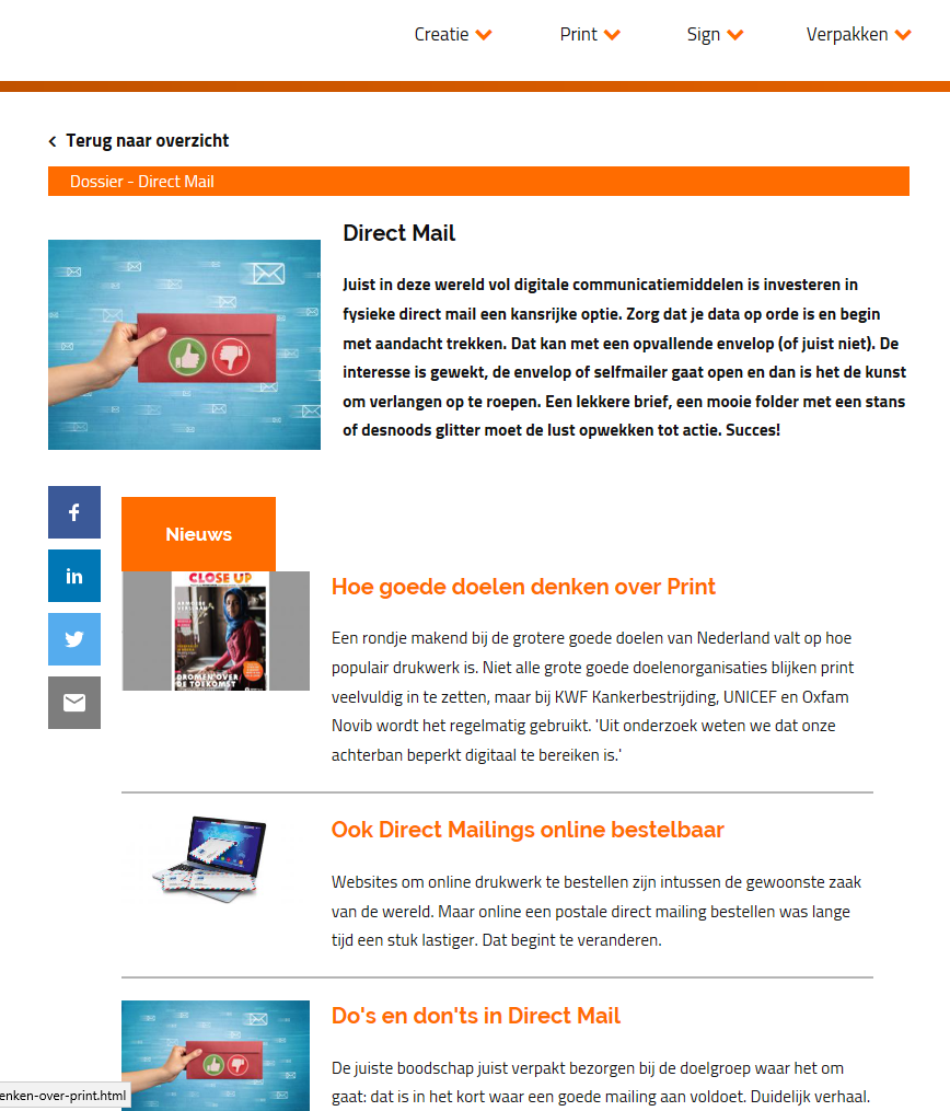 - Wat komt er allemaal kijken bij een effectieve Direct Mail-campagne? De beste artikelen die de redactie hierover in de zomer van 2018 publiceerde, hebben we gebundeld in het dossier “Direct Mail”, binnen de categorie “Management & Ondernemerschap”
