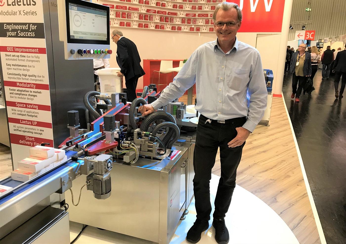 Het Duitse Laetus demonstreerde op de FACHPACK oplossingen voor het volautomatisch serieel bedrukken en verzegeld afsluiten van diverse formaten farma-verpakkingen in een verpakkingslijn. De aanwezige MV 1000-machine toonde zich razendsnel én precies.