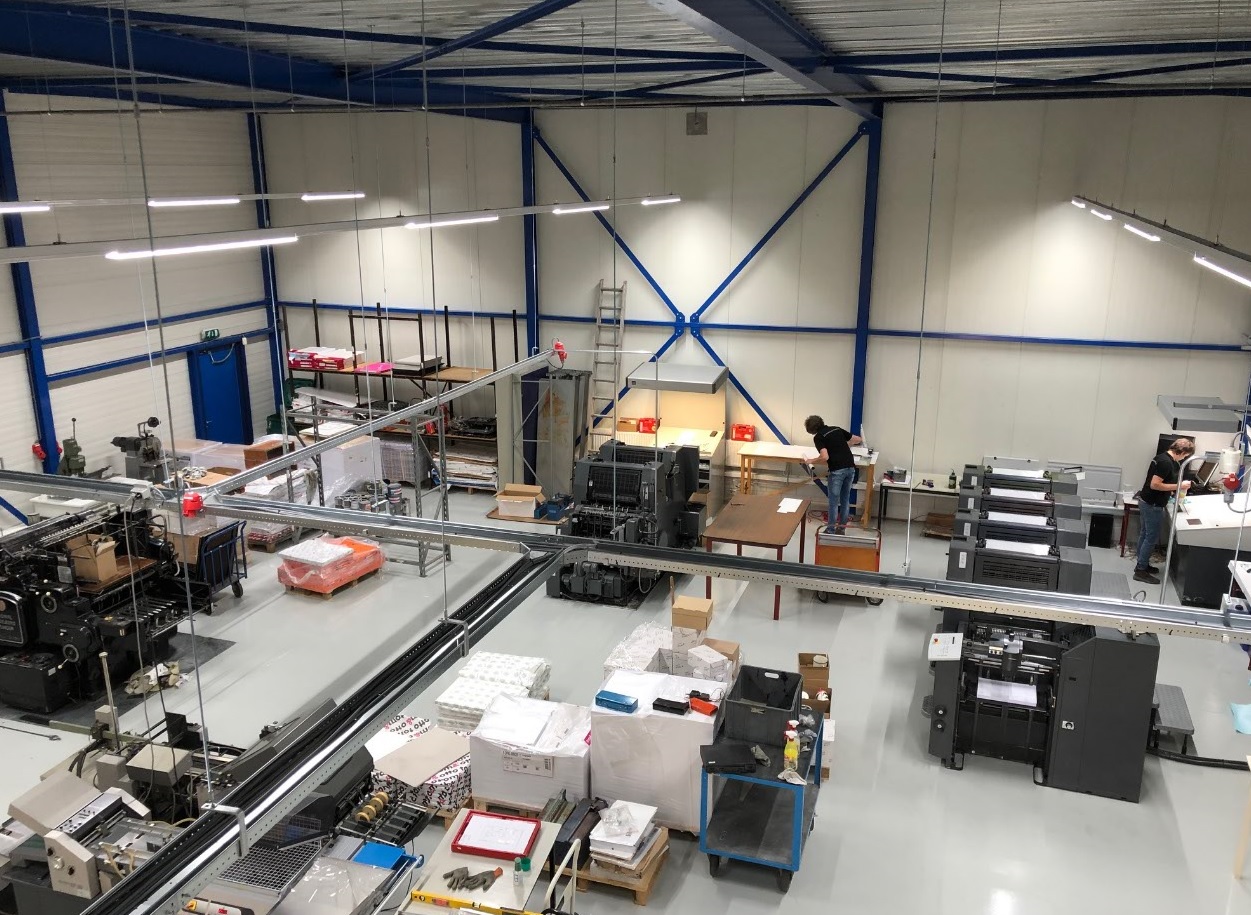 De Xeroxprinter en de gloednieuwe Konica Minolta Accuriopress c3070 draaien al in het nieuwe pand als we Ritske Ponsteen op 12 mei aan de lijn hebben. ‘Onze tweekleuren GTO, de vierkleuren Printmaster en de nabewerkingsapparatuur worden vanmiddag verplaatst.’