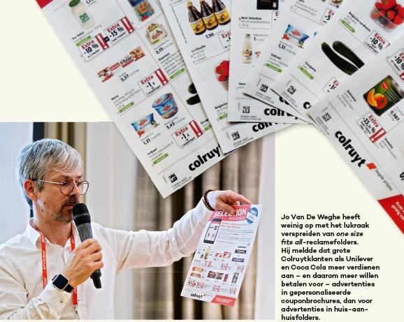 Jo Van De Weghe is sales & marketingdirecteur bij Symeta, het onderdeel van de Colruyt Group dat gespecialiseerd is in direct mail en documentoplossingen. Deze expertise stelt Symeta overigens niet alleen ten dienste van Colruyt, maar ook van andere partijen, variërend van jeansproducenten tot reisbureaus en zelfs concurrenten van Colruyt. Van De Weghe deed de Colruyt-case uit de doeken tijdens een congres van Intergraf, de Europese koepel van grafische brancheorganisaties.
