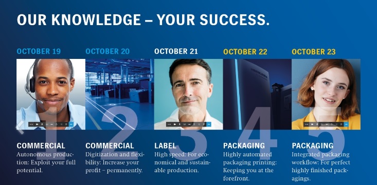 Van 19 tot 23 oktober zijn online de actuele Heidelberg-innovaties in de commerciële, label- en verpakkingsdruksegmenten te volgen. Daarbij ligt de nadruk op het potentieel van digitalisering van processen.